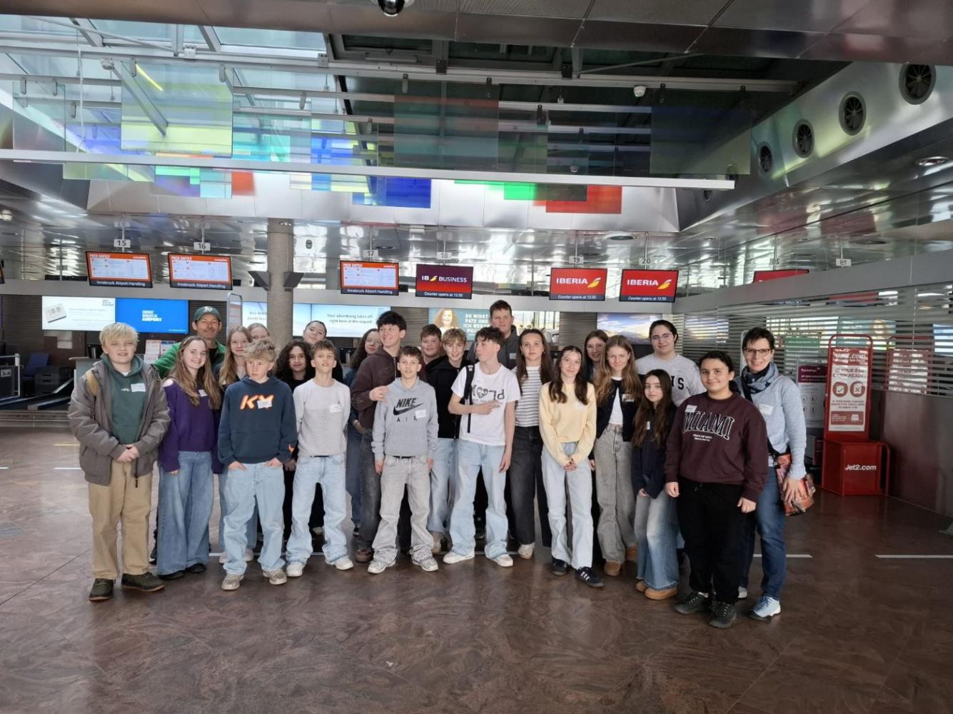 Of course, we students had to prepare ourselves for this exciting day. First, we had to get the permission from the airport for our visit. Then we had to think about interesting questions we could ask. Finally, the big day had come. In the morning, we practiced our interview texts at school again so we would feel more confident. We were all very excited because we had to speak English the whole day and that meant also on the way to the airport and back to school. The journey didn’t take us very long although we had to use different means of transportation (bus – train - bus). Maybe this was because many of us talked about the interviews and wondered if people would actually agree to speak with us. At the airport we were all curious and a little bit nervous. We worked in groups of three and our task was to interview people. Sometimes people said “no” or were in a hurry, so we had to wait and try again. But many travellers were friendly and happy to help us with our project. Some interviews were very amusing, and we learned interesting things about where people were from and where they were travelling. Even the flight crew became very enthusiastic and wanted to get more information about our project.