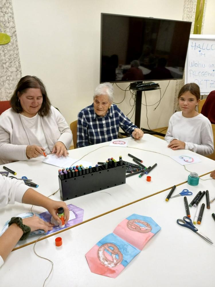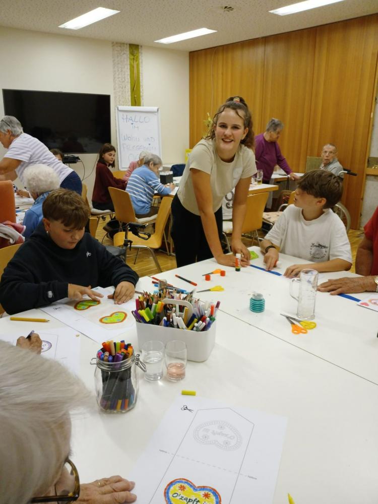 Wir erlebten sehr nette Begegnungen, die generationenübergreifende Atmosphäre bei den verschiedenen Aktivitäten (Basteleien fürs Oktoberfest, ein Besuch an unserer Schule „Lollipoptag“, ein Verwöhn- Wellnessnachmittag…) hat uns alle begeistert.